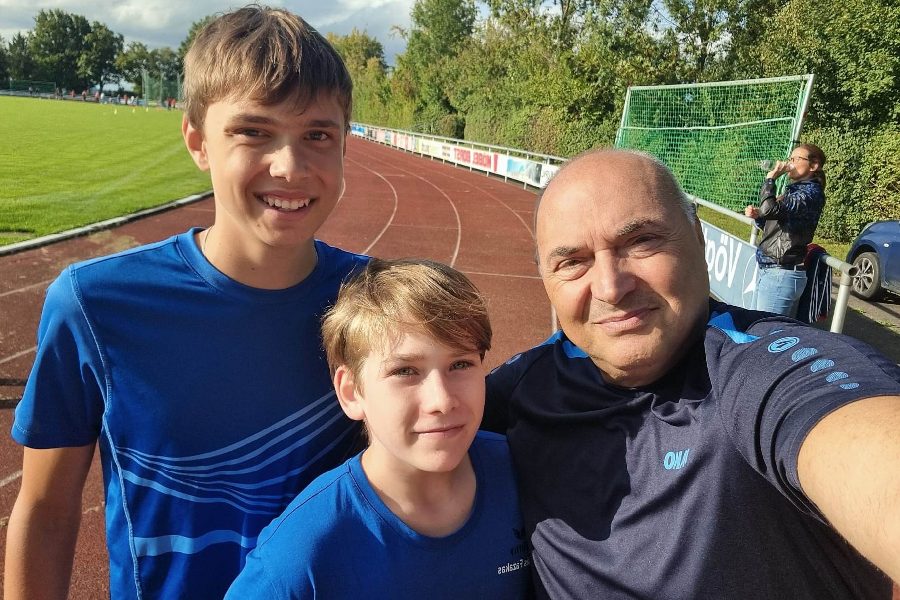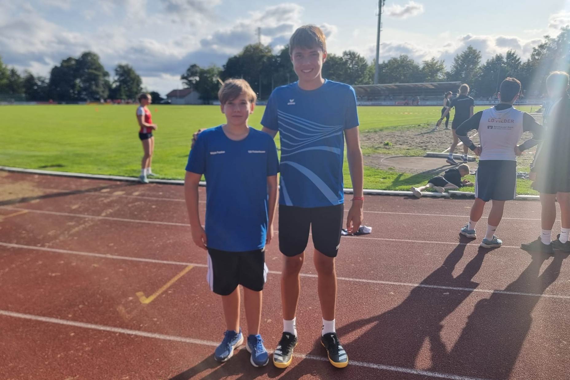 Matyas (M13) musste zunächst im Kugelstoß (3kg) ran. Dabei lieferte er eine Serie, die durchweg über seiner bislang notieren Bestleistung lag. Mit 7,12m (+0,74m BL) belegte er den vierten Platz.  Einen weiteren vierten Platz konnte er sich im Diskus (0,75kg) sichern, wo er mit 22,43m in die Nähe seiner Bestleistung kam. Valentin (M14) begann mit dem Speerwurf (600g) bei dem er mit 29,25m im letzten Wurf den zweiten Platz belegen konnte. 10,86m ergaben beim Kugelstoß-Wettbewerb (4kg) den ersten Platz. Ein Wettkampfnachmittag, der bislang „so eher OK“ einzuordnen war, fand dann mit dem Diskuswurf (1kg) ein versöhnlichen Abschluss. Mit 35,68m verbesserte er seine Bestleistung um 0,24mBL und konnte sich damit klar den ersten Platz sichern. Konstantinos war das Maß der Dinge im Diskuswurf (1,75kg) der U20. Mit 53,39m ließ er keine Zweifel aufkommen und belegte damit klar den ersten Platz.