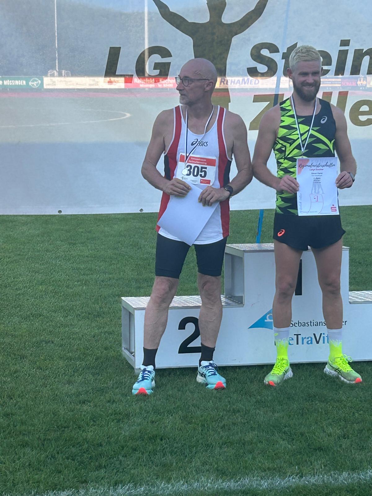 Felicitas Klein, Jakob Andersch, sowie Bernd und Jessica Walter zog es für Regionalmeisterschaft über die Lange Strecken auf die Rundbahn des Mössinger Ernwiesenstadion. Felicitas (W12) ging dabei erstmals über die 2000m an den Start. 8:10,43min sind kein schlechter Einstieg in diese Disziplin. Damit holte sie sich nicht nur den Regionalmeistertitel, sondern führt zum jetzigen Zeitpunkt die württembergische Bestenliste deutlich an Platz 1. Jakob und Bernd starteten über die 5000m. Die 12,5 Stadionrunden war bis zu diesem Jahr für Jakob noch Neuland. Dass er damit zurecht kommt zeigt eine erneute Verbesserung seiner Bestleistung um 15,86s auf 20:32,58min (Platz 2 / U20). Bernd (M60) lief mit 21:37,50min in der Männer-Klasse ebenfalls auf Platz 2. Bei den Frauen holte sich seine Tochter Jessica mit 23:37,84min den ersten Platz.