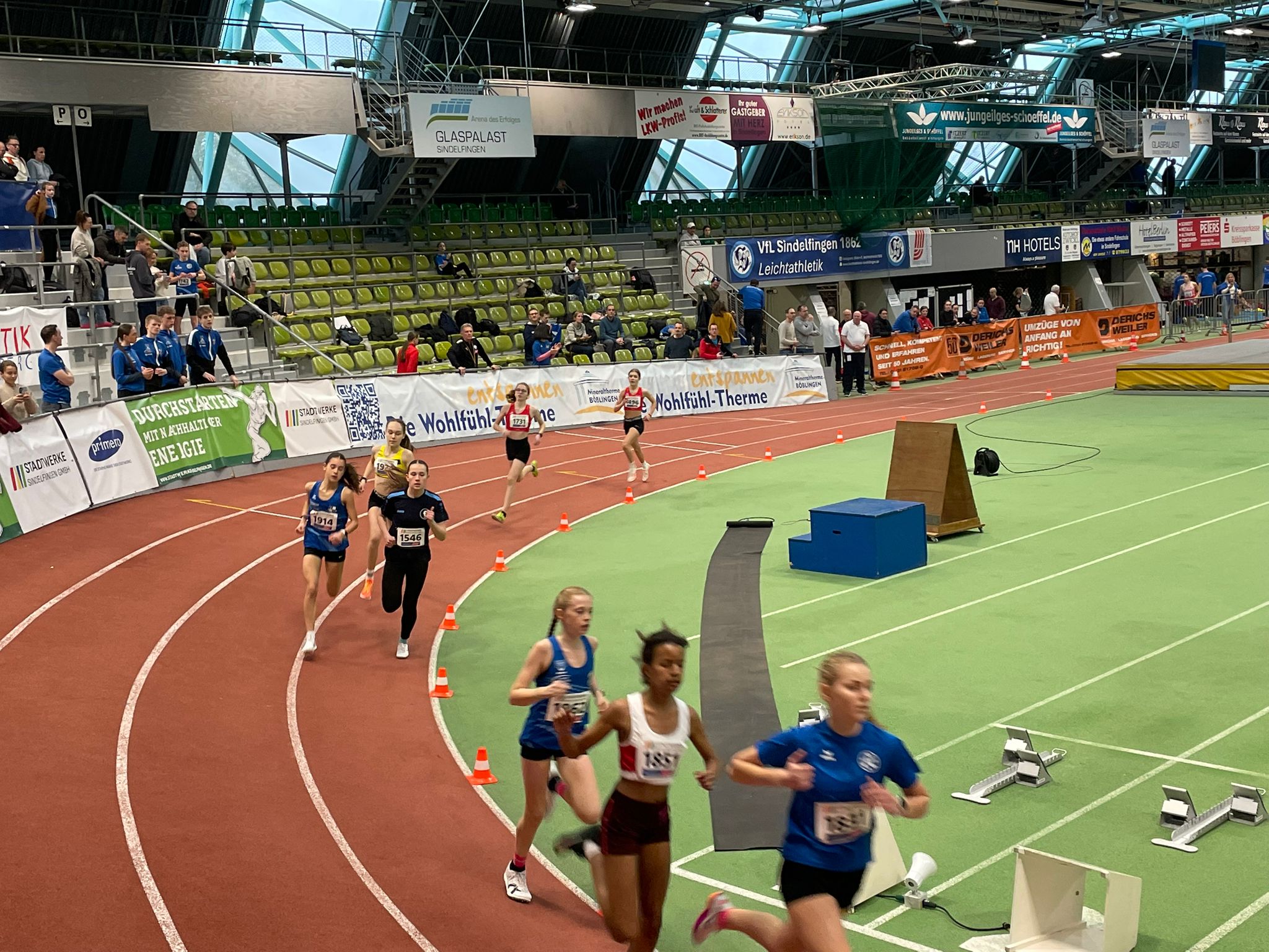 Der VfL Sindelfingen hat im Januar, Februar ein straffes Programm an Veranstaltungen, das auf die Beine gestellt wird. Eine Veranstaltung davon ist das Jugendhallensportfest in dem auch die Rundbahn-Wettbewerbe der württembergischen Meisterschaften durchgeführt wurden, die in Ulm nicht möglich sind. Über die 800m ging vom TSV Frickenhausen hier Maelle Bartsch an den Start. Mit 2:37,62min über die 4 Hallenrunden konnte sie ihre Bestleistung um 2,02s verbessern und belegte damit Platz 14 in ihrem ersten Rennen auf Landesebene.