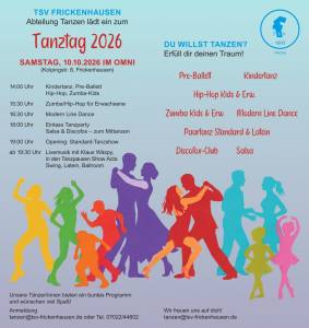 Der Tanztag findet am Samstag, 10.10.2026 im OMNI in Frickenhausen statt und