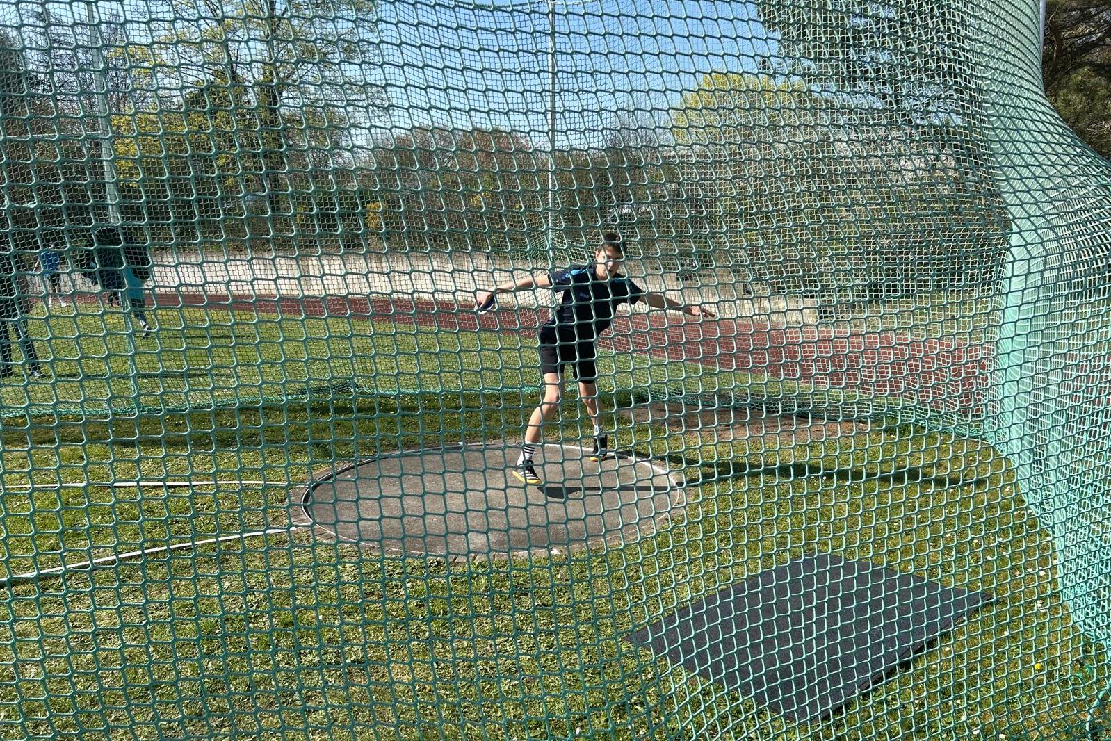Beim Diskus (1,5kg) lieferte Tom ein solides Trefferbild ab. Die von Trainer Dimis prophezeite 30m-Marke soll aber noch warten müssen. 25,76m sollte die weiteste Weite an diesem Tag bleiben und bedeuteten Platz 4. Beflügelt vom Ergebnis im Kugelstoß stieg Valentin in den Diskusring (1kg). Hier konnte er gleich mehrfach seine bislang notierte Bestweite überbieten. Letzen Endes um 4,47m. Mit der Weite von 44,47m distanzierte er die restliche Konkurrenz deutlich und belegte auch hier Platz 1. Hier fehlen nur wenige Zentimeter für die DM-Qualifikation. (aktuelle DLV-Bestenliste, Rang 4)