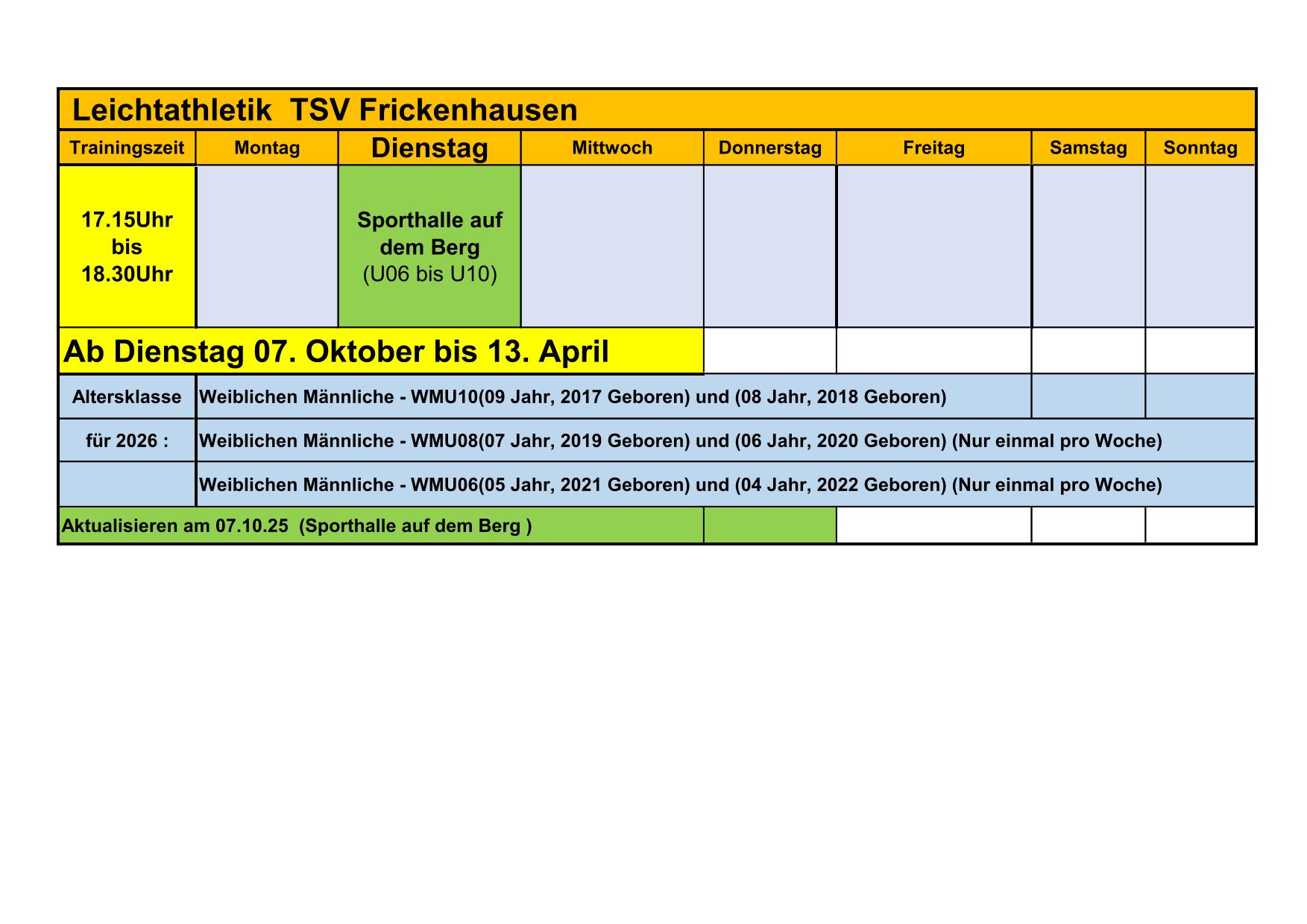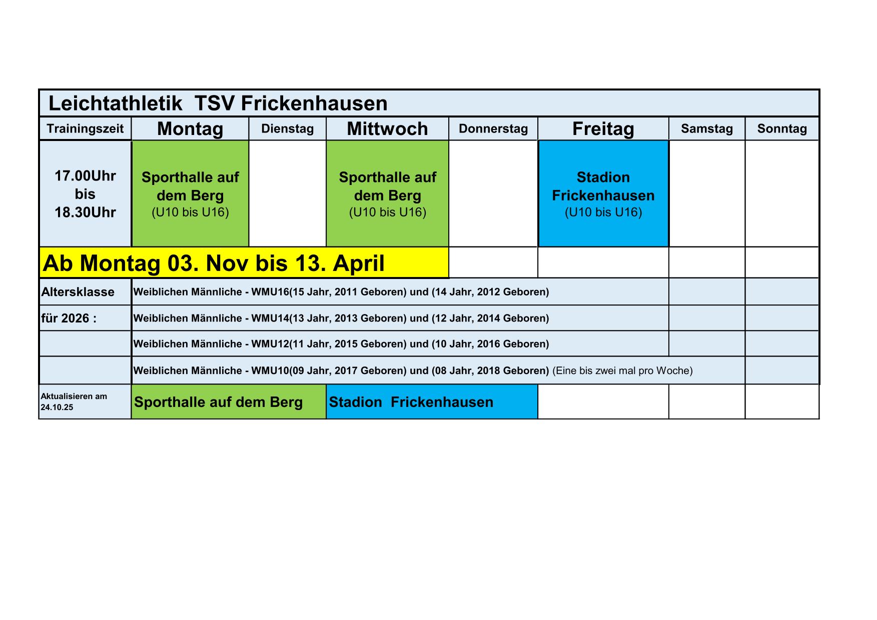 Trainingszeit für WMU16 – Jugend – Aktive (Leistungssport & Breitensport)