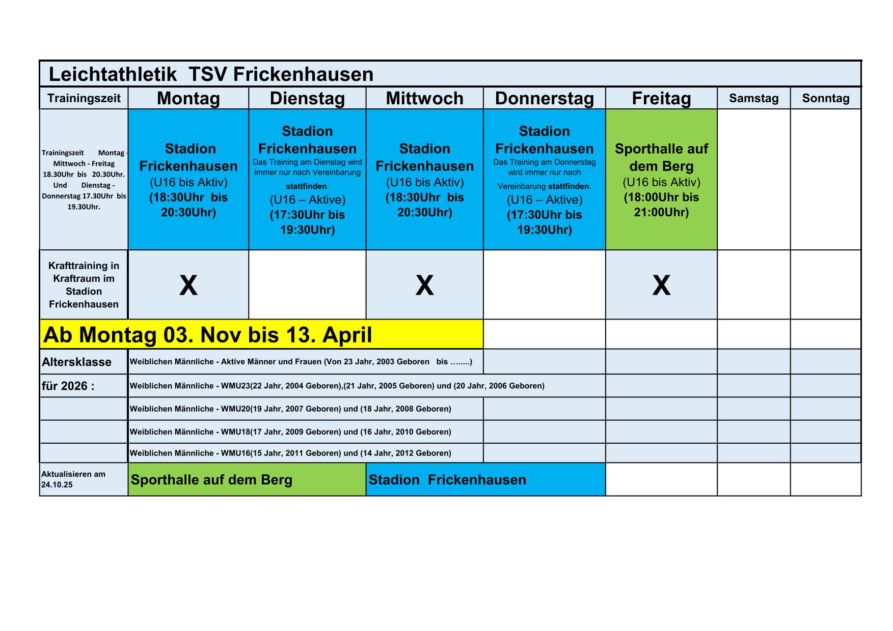 Ab 03. Nov – 13. April 2026